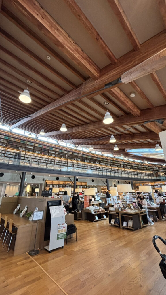 図書館・書店・カフェが一体となった空間は、観光スポットとして訪れる人も多い場所です。